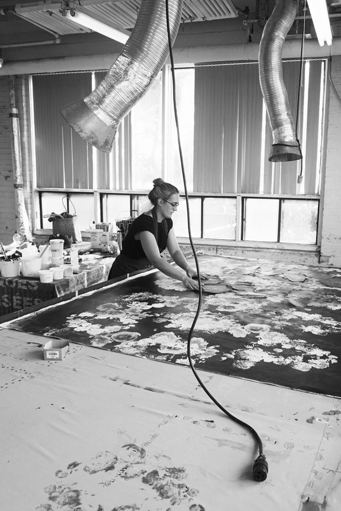 Diplômée en design intérieur de l’école ENSAAMA Olivier de Serres à Paris et designer textile, Mathilde Moreau travaille dès 2006 pour des firmes d’architectures spécialisées dans les programmes culturels et à valeur patrimoniale. Après une immigration au Québec, elle concrétise son désir d’exploration de nouvelles techniques en se spécialisant dans le domaine de l’ennoblissement textile au Cégep du Vieux Montréal. D’origine française et installée au Québec depuis 2010, elle fonde son entreprise de design textile en 2014 et présente ses créations d’accessoires textiles et de carrés de soie. Elle participe au Salon des métiers d’arts en 2014 et 2017. La qualité de sa production lui permet de construire une réputation dans le milieu de la création textile Québécoise. En 2017, elle oriente son travail vers l’art visuel et développe la série intitulée « murales », dont une des pièces figure parmi les finalistes du prix François Houdé en 2017.
