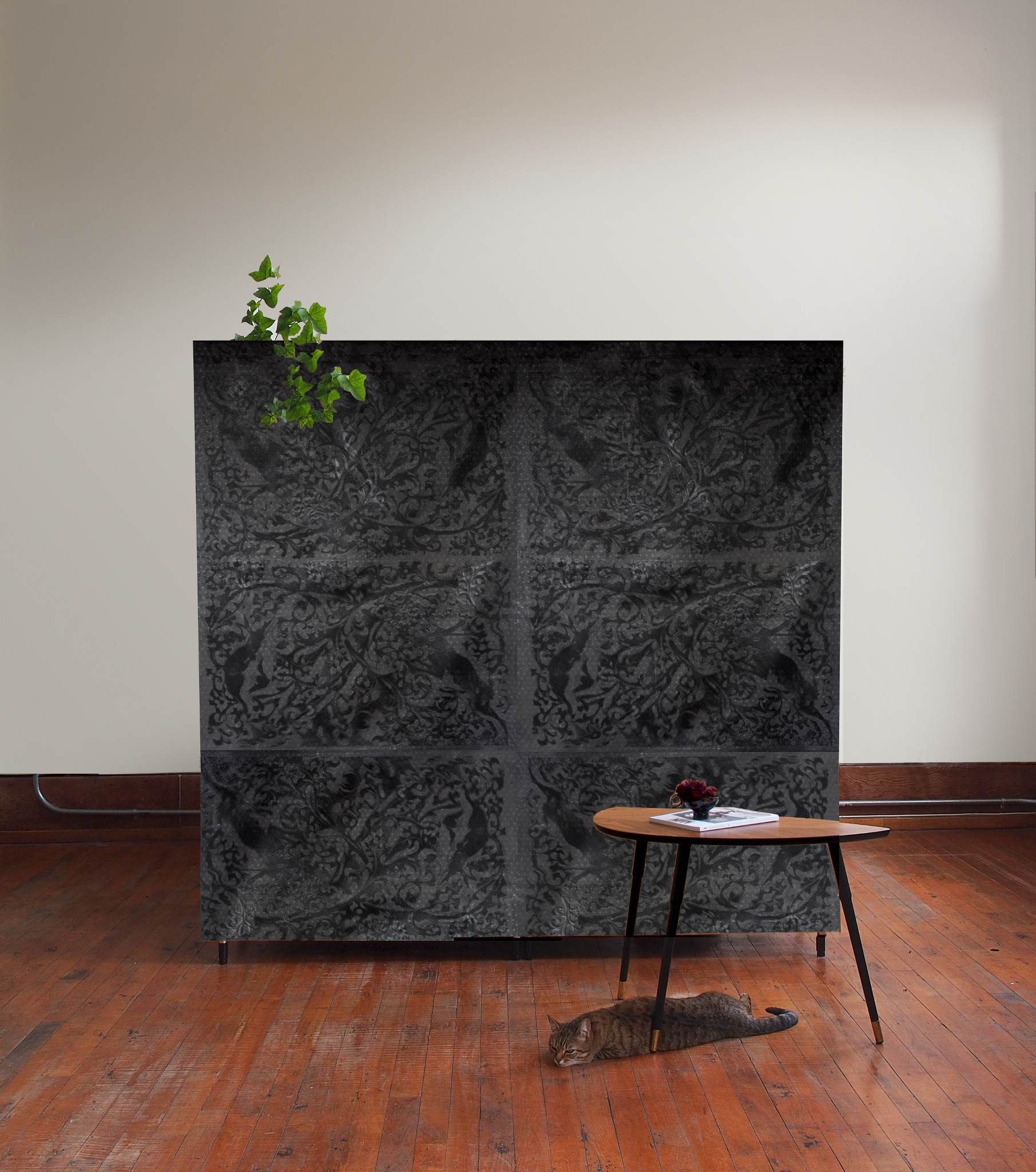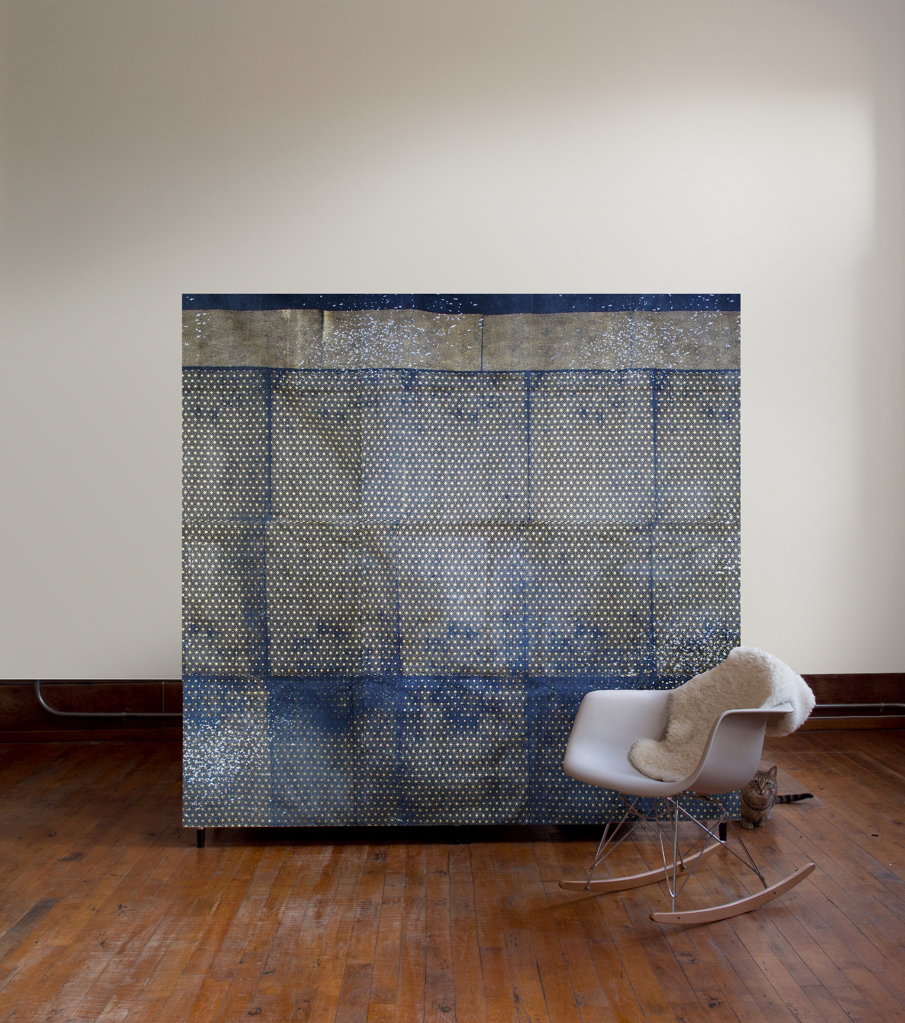 Collection de murales sérigraphiées par mes petites mains main, dans mon atelier à Montréal. Les murales font souffler un vent de renouveau dans le monde de la tapisserie avec un mélange sensible de textures, de motifs folks, et de design graphique. J’offre un service sur mesure, de la conception de motifs exclusifs à la recherche de couleurs, pour proposer des décors muraux sérigraphiés qui sauront s’adapter à tous les espaces, et répondre aux cahiers des charges les plus pointus. Les murales sont imprimées sur une toile de coton facile d’entretien et lavable, à encoller au mur ou à tendre sur un châssis. Entièrement de fabrication montréalaise, les murales renouent avec un riche passé du papier peint imprimé à la main, en y ajoutant une touche de design contemporain.